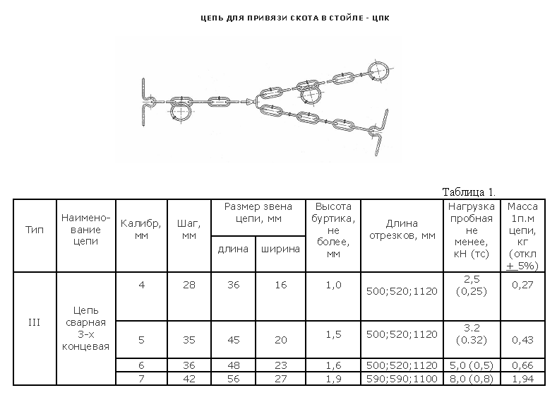 Цепь сварная трехконцевая для привязи и вождения крупного рогатого скота (тип III, СТПВ) РСТ УССР 1592-90