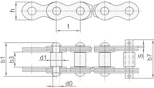 - Тип 1 - цепь грузовая пластинчатая с закрытыми валиками без присоединительных элементов;