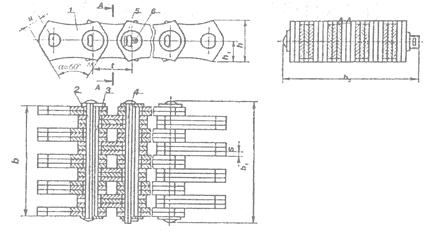 Рис. 2 Цепь приводная зубчатая с двусторонним зацеплением