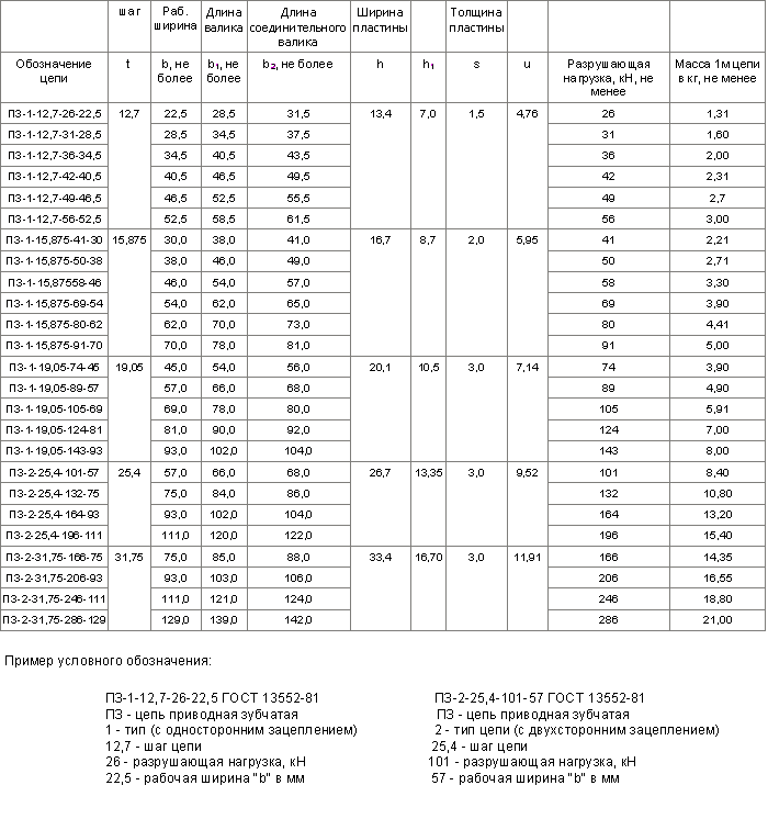 Цепи приводные зубчатые ПЗ выпускаются по ГОСТ 13552-81 и по стандарту предприятия.