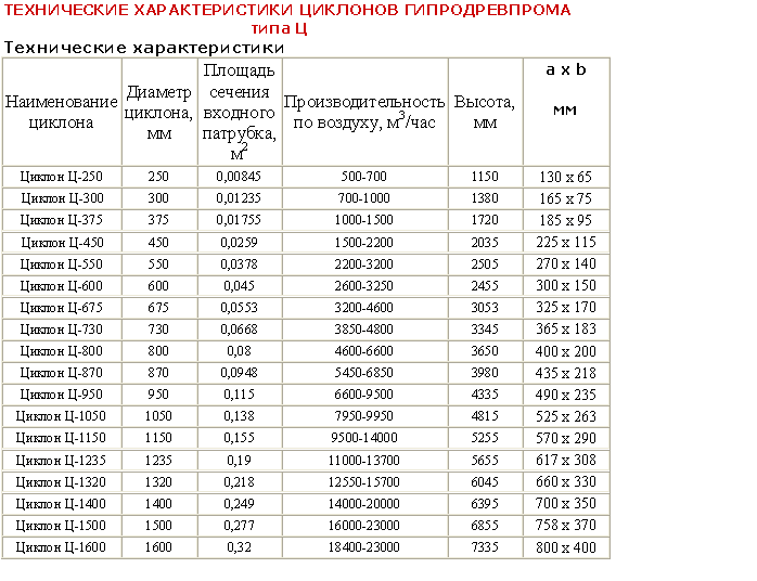 Циклоны Гипродрвпрома типа Ц предназначены для механического улавливания древесных отходов (стружки, опилок, пыли) в системе пневмотранспорта. Эти циклоны обладают высоким коэффициентом, очистки воздуха. Для волокнистой и слипающейся пыли данные циклоны применять не следует.