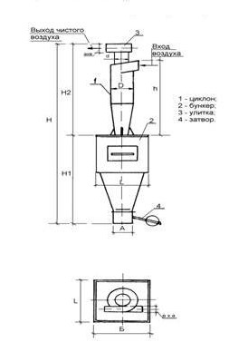 В зависимости от пропускной способности по воздуху (газу) и условий применения циклоны изготавливаются одиночного или группового исполнения - из двух, четырех, шести и восьми циклонов. Групповые циклоны могут быть с камерой очищенного воздуха в виде "улитки" или в виде сборника, а одиночные - только с улиткой
