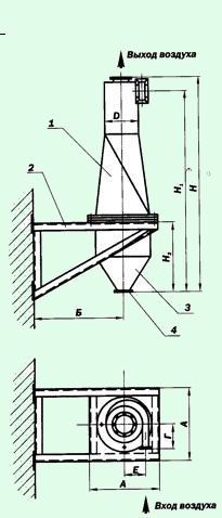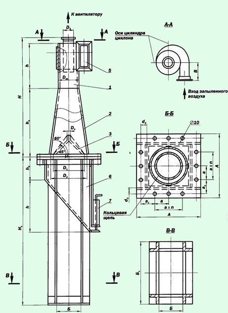 Во избежание износа вентилятора при работе с абразивной пылью циклоны рекомендуется устанавливать перед вентилятором на всасывающей стороне. В этом случае для уменьшения гидравлического сопротивления циклона на выхлопном патрубке рекомендуется устанавливать "улитку". Чтобы продлить срок службы циклона, работающего с абразивными пылями, завихритель может быть изготовлен из низколегированной стали.