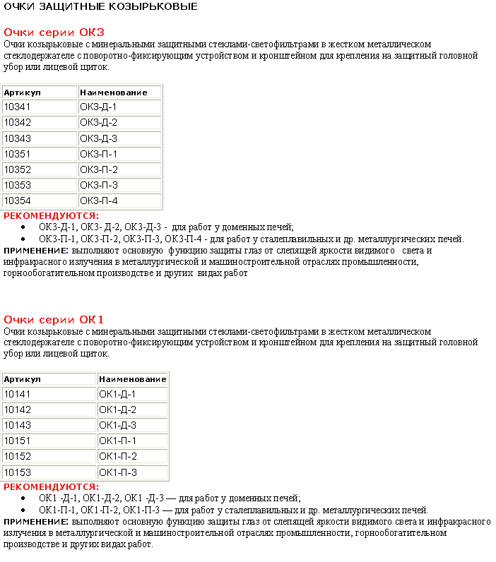 Очки защитные козырьковые серии ОКЗ, ОК1