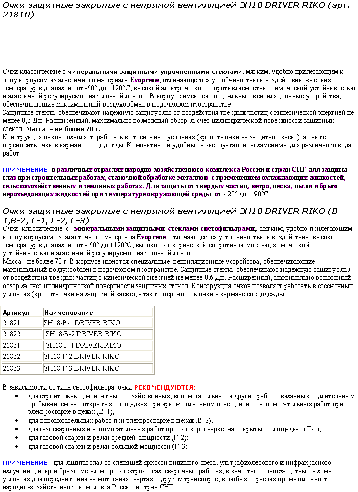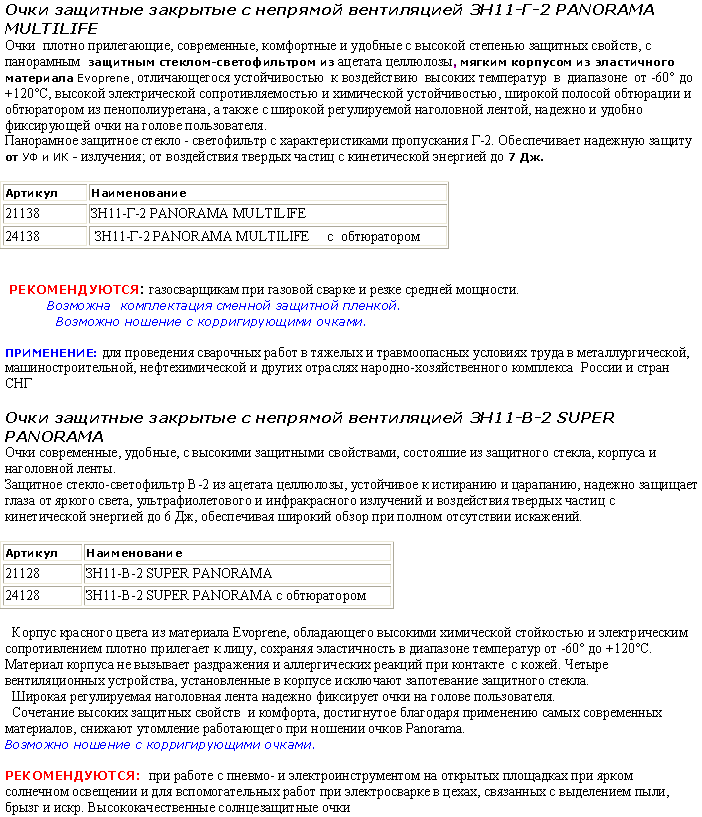 при работе с пневмо- и электроинструментом на открытых площадках при ярком солнечном освещении и для вспомогательных работ при электросварке в цехах, связанных с выделением пыли, брызг и искр. Высококачественные солнцезащитные очки