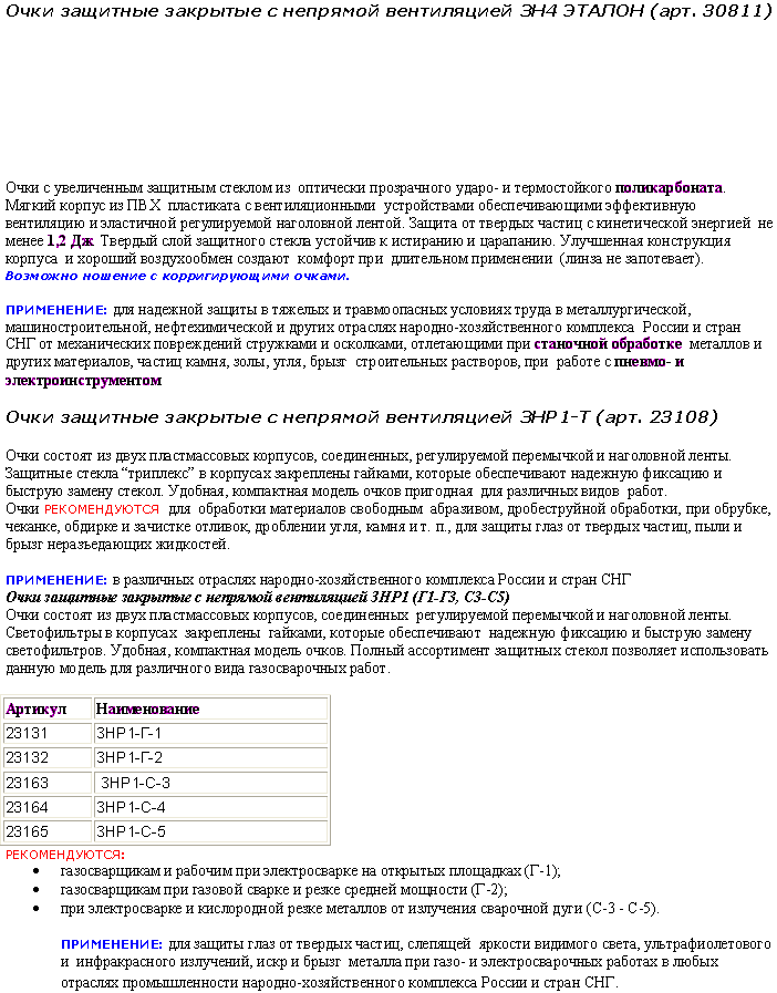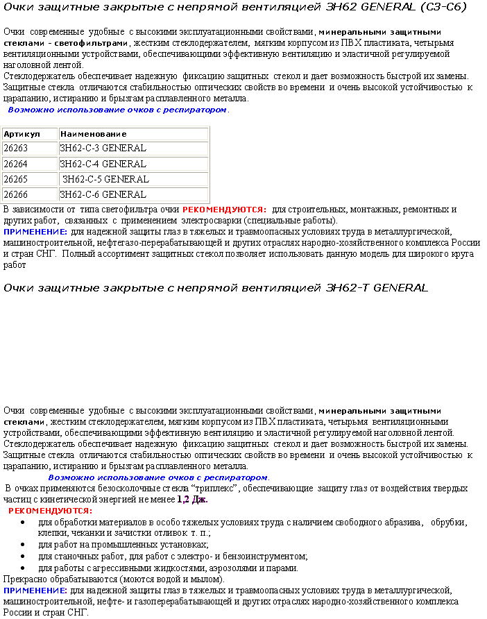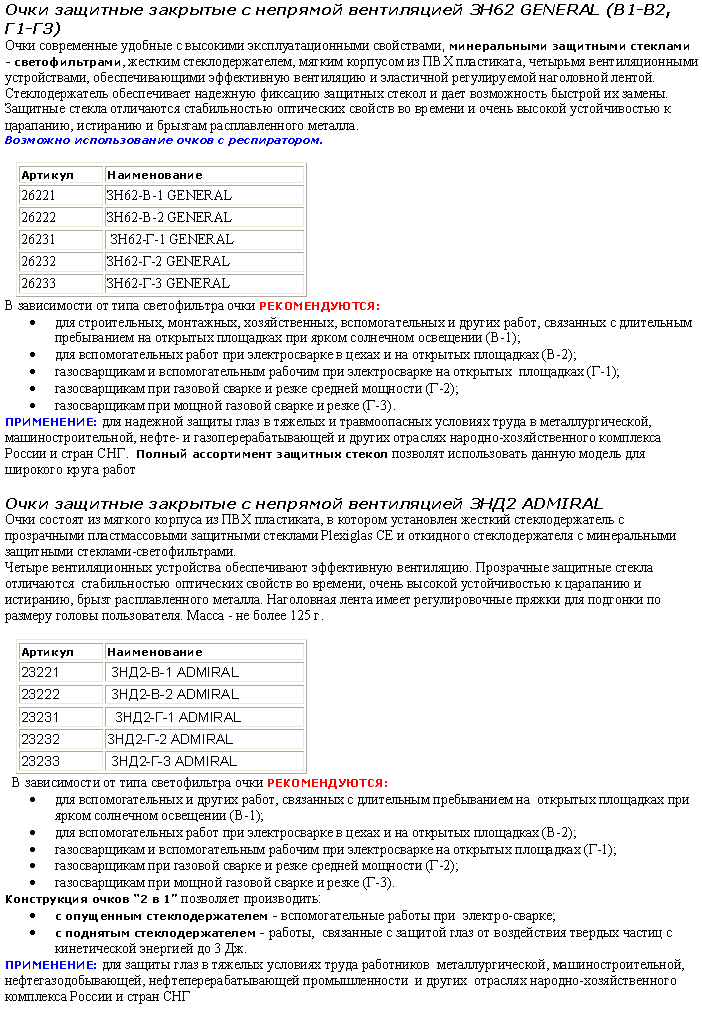 для защиты глаз от механических повреждений стружками и осколками, отлетающими при станочной обработке металлов и других материалов, частиц камня, золы, угля, брызг строительных растворов, при работе с пневмо- и электроинструментами