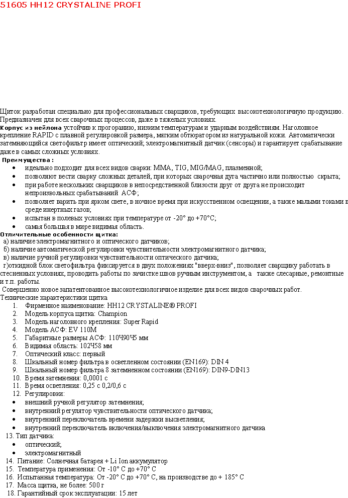 ПРИМЕНЕНИЕ: для надежной защиты глаз и лица электросварщика от прямых излучений сварочной дуги, брызг расплавленного металла и искр во всех отраслях народно-хозяйственного комплекса