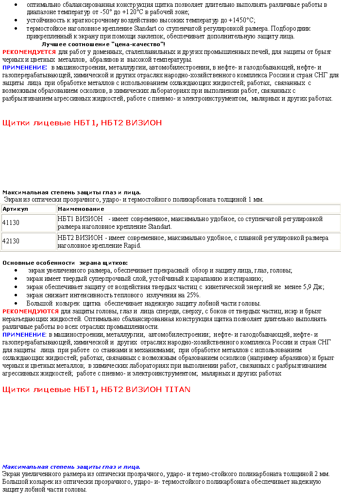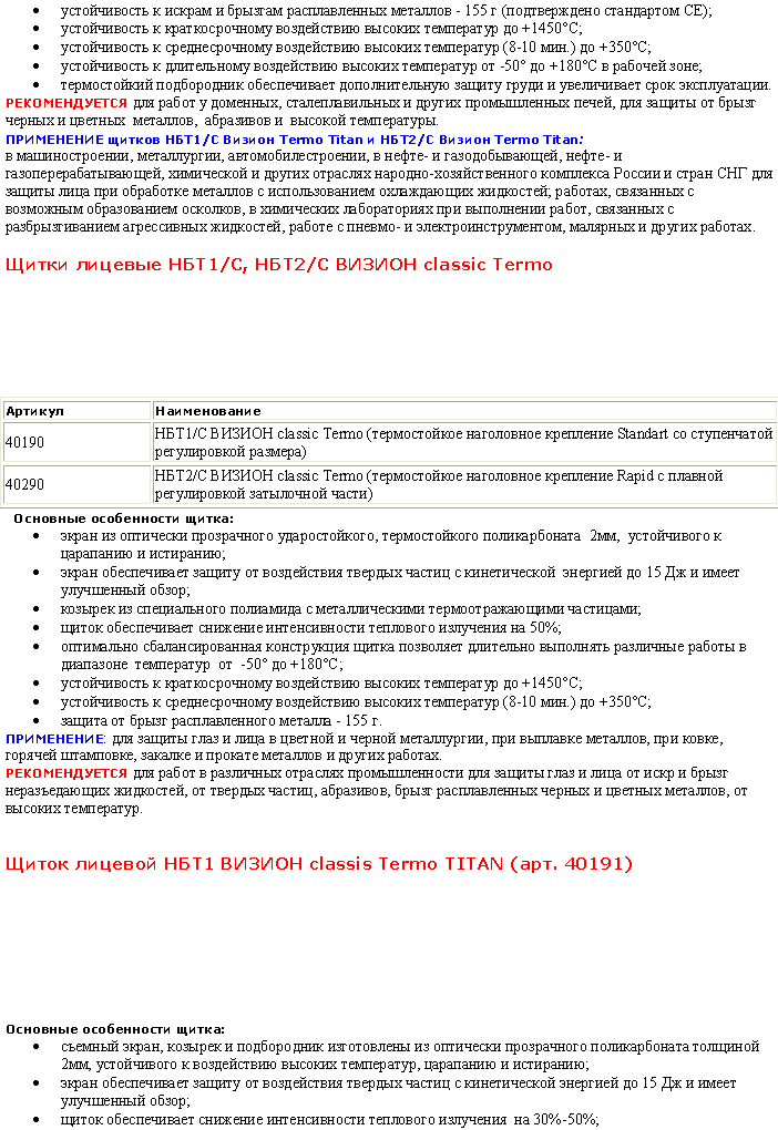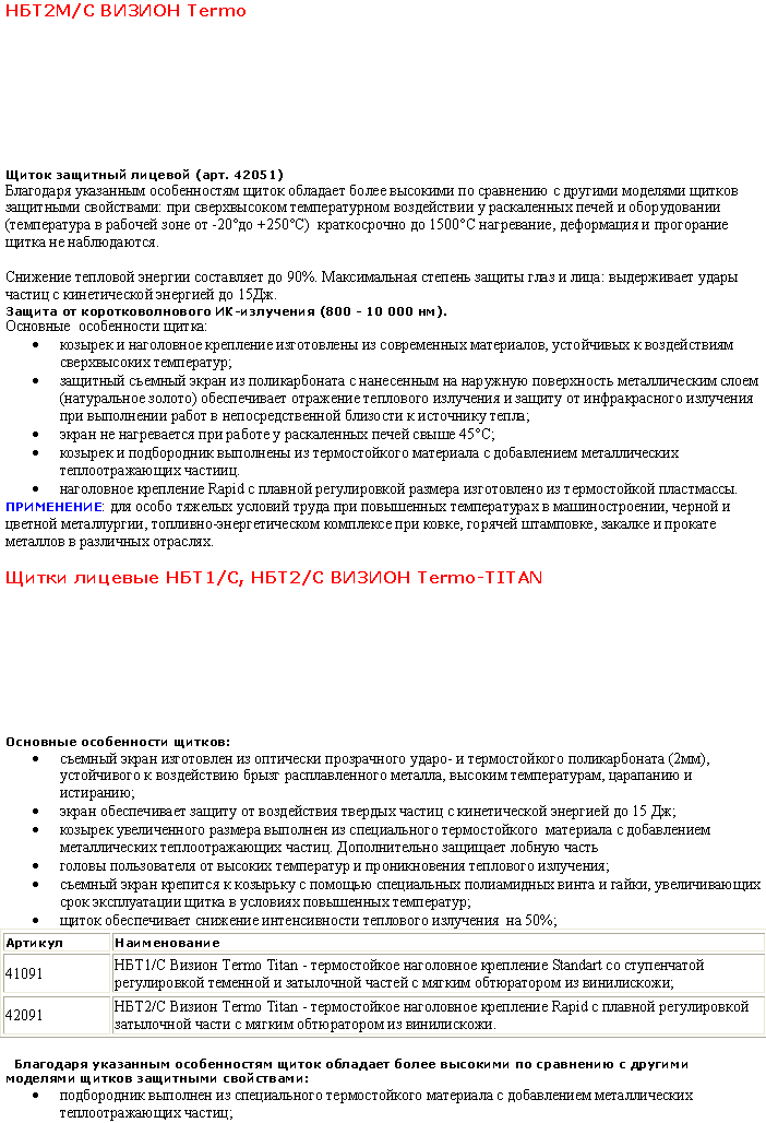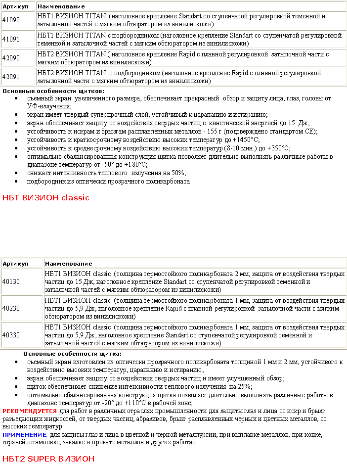 Щитки лицевые НБТ1/С, НБТ2/С ВИЗИОН Termo-ТITAN