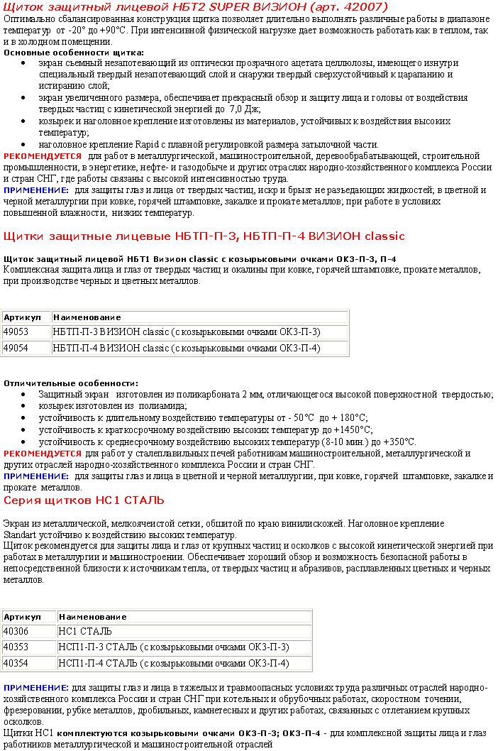 ПРИМЕНЕНИЕ: для защиты глаз и лица в цветной и черной металлургии, при выплавке металлов, при ковке, горячей штамповке, закалке и прокате металлов и других работах.