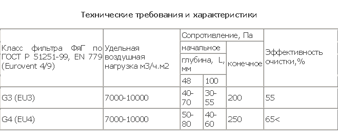 Фильтры работоспособны и сохраняют свои технические характеристики при температуре очищаемого воздуха от -400 С до +700 С.