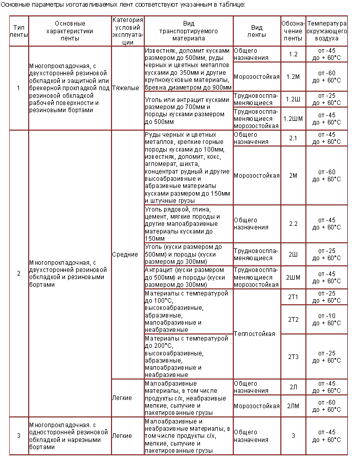 Транспортерные (конвейерные) ленты выпускаются следующих типов: