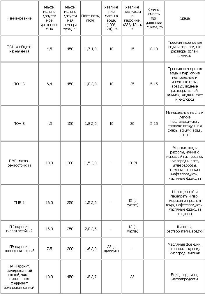 Паронит ПОН-Б общего назначения предназначен для уплотнений соединений и стоек к таким веществам: вода, перегретая вода, перегретый насыщенный пар, инертные и нейтральные газы, воздух, водные растворы солей, жидкий и газообразный аммиак. Работоспособен при температурах от -50°С до +450°С. Плотность 1.8-2.0 г/см3