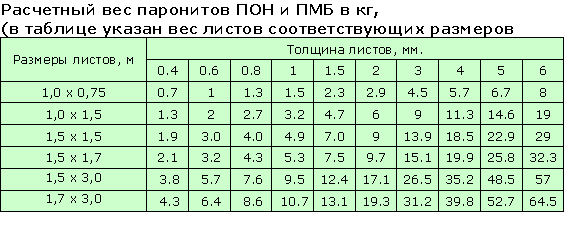 Парониты имеют следующую толщину: 0,4; 0,6; 0,8; 1,0; 1,5; 2,0; 3,0; 3,5; 4,0; 5,0; 6,0.Листы ПОН, ПК и ПЭ следующих размеров: 1000х750, 1500х1000, 1500х1500, 3000х1500. Листы ПМБ и ПА следующих размеров: 500х500; 1000х750; 1500х1000