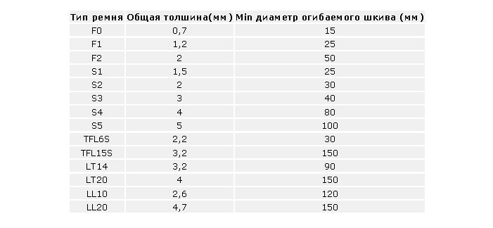 При выборе плоских ремней обратите внимание на соответствие их толщины минимального диаметра шкива