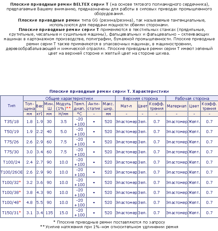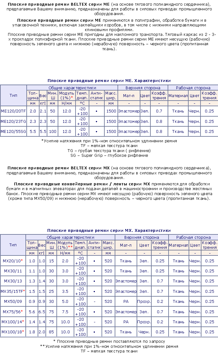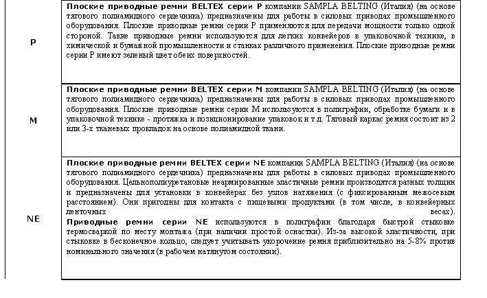 Плоские приводные ремни BELTEX (на основе тягового полиамидного сердечника) для передачи мощности компании SAMPLA BELTING (Италия), предлагаемые Вашему вниманию, предназначены для работы в силовых приводах промышленного оборудования