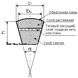 Ремни должны состоять: из несущего слоя на основе материалов, из химических волокон (кордшнур или кордная ткань), оберточного тканевого слоя и слоев резины, с вулканизованных в одно изделие. Несущий слой располагается в продольном направлении ремня. В слоях резины может быть применена ткань