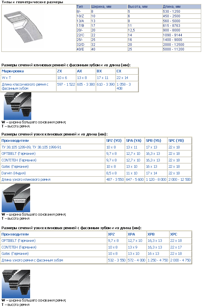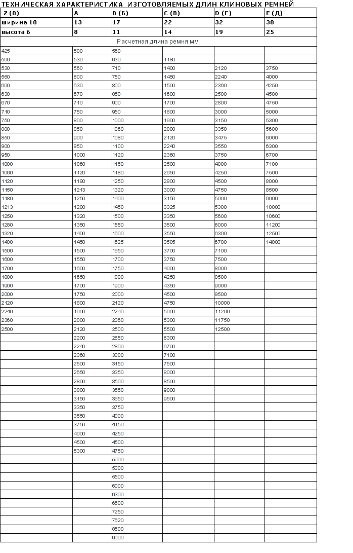 Клиновые ремни различают по профилям, обозначаемые латинскими буквами