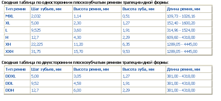(маркировки: MXL, XL, L, H, XH, XXH); аналог- (Зубчатые ремни Optibelt ZR)