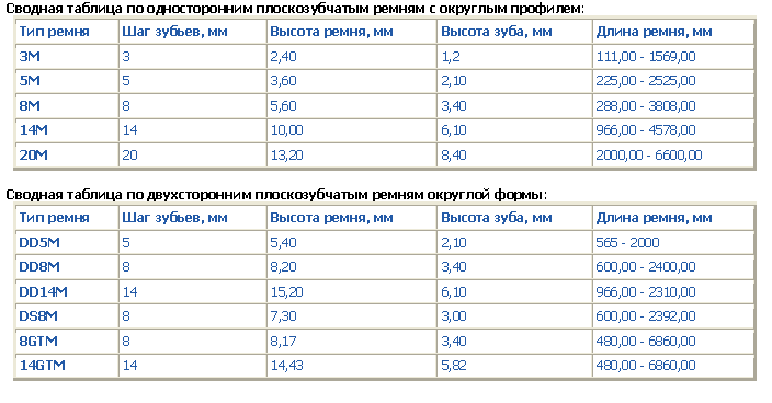 (маркировки: T 2.5, T 5, T 10, AT5, AT10, АТ15, АТ20, MXL, XL, L); аналог- (зубчатые Optibelt alpha)