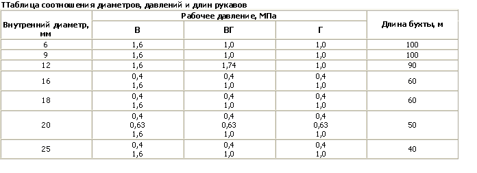 Рукава типов Б, В, ВГ, Ш, П - должны быть прочными при разрыве гидравлическом давлении (запас прочности) не менее 3,0 Р, типа Г - не менее 5,0 Р