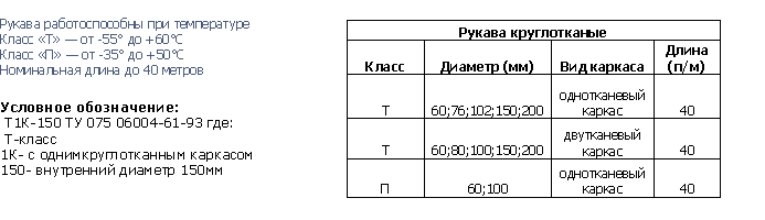Для снятия статического напряжения рукава изготавливаются с медной стренгой. Изготавливаются с внутренним диаметром от 40 до 200 мм, длиной до 40 пм