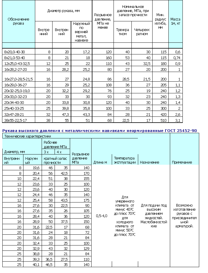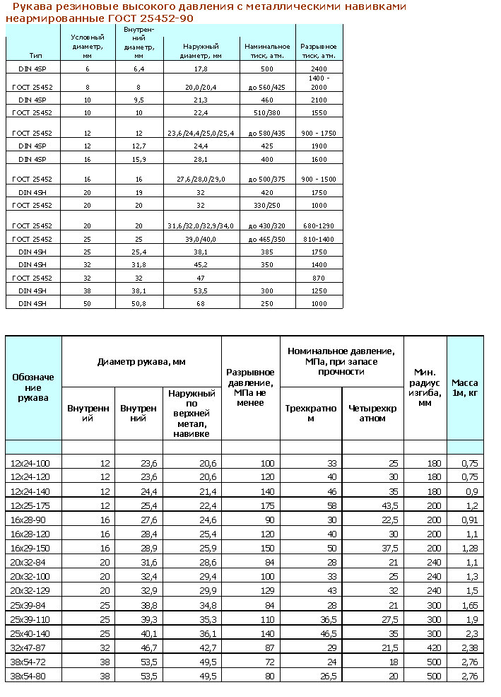 Рукава резиновые высокого давления с металлическими навивками неармированные ГОСТ 25452-90