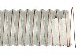 Цвет: полупрозрачный. Рабочая температура: -40°С +90°С. Свойства: полиуретановый рукав, армированный стальной спиралью с покрытием, гофрированный. Механические свойства - очень легкий и гибкий, высокая стойкость к истиранию и гибкость благодаря применению полиуретана ( в 5 раз выше чем у обычного ПВХ). Погодоустойчив, подходит для большинства химикатов.