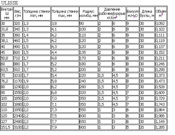 Свойства: шланг из полиуретана с жесткой спиралью из ПВХ. Внутри гладкий, снаружи слегка ребристый.