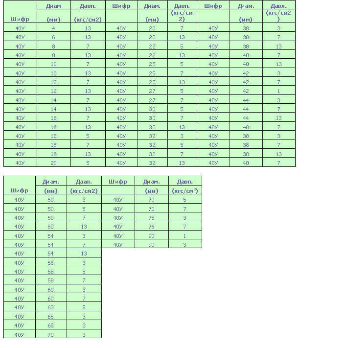 Запас прочности: не менее, чем 2,5Р, где Р - рабочее давление.