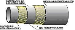 Рукав высокого давления может быть изготовлен двух типов: с одной и двумя оплетками из металлической проволоки (тип I и тип II соответственно).