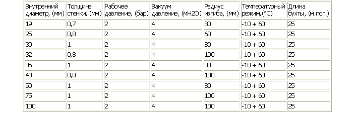 ХАРАКТЕРИСТИКА: Нетоксичен и может использоваться в пищевой промышленности. За счет укрепления металлической спиралью обладает повышенной упругостью, одновременно сохраняя очень высокую гибкость. Высокая устойчивость к истиранию. Способен к антистатической разрядке.