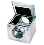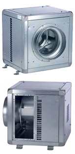 Вентиляторы в шумоизолированном корпусе из оцинкованной листовой стали с звукоизоляцией из синтетического огнеупорного материала (М1).