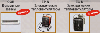 Серии: COR(воздушные завесы), EP-N(электрические тепловентиляторы),