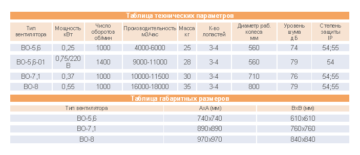 НАЗНАЧЕНИЕ ВЕНТИЛЯТОРОВ ОСЕВЫХ ВО-5,6, ВО- 7,1 (аналог «Климат-45» «Климат-47»)