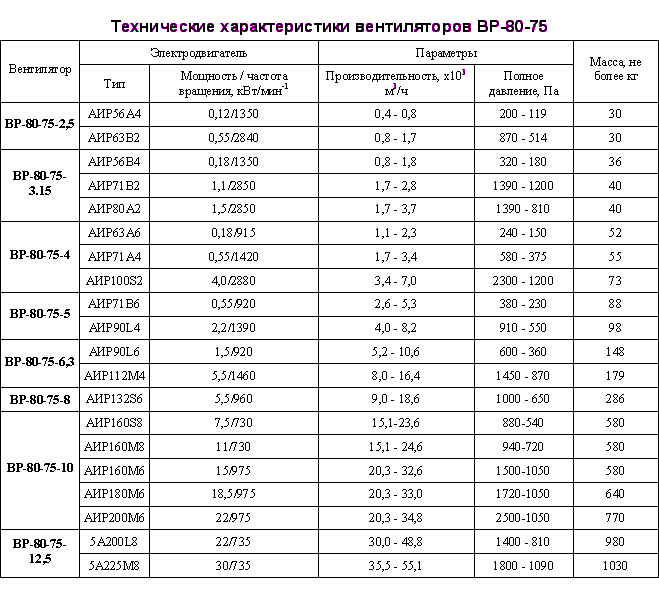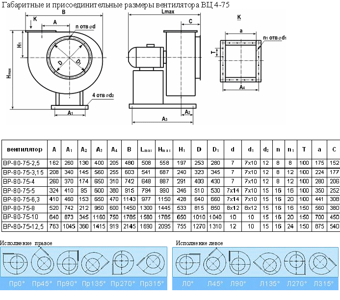 Вентиляторы радиальные низкого давления ВЦ-4-75 (аналог 75ВР 80-75 ВР-86-77, ВЦ-4-75, ВЦ-4-70)
