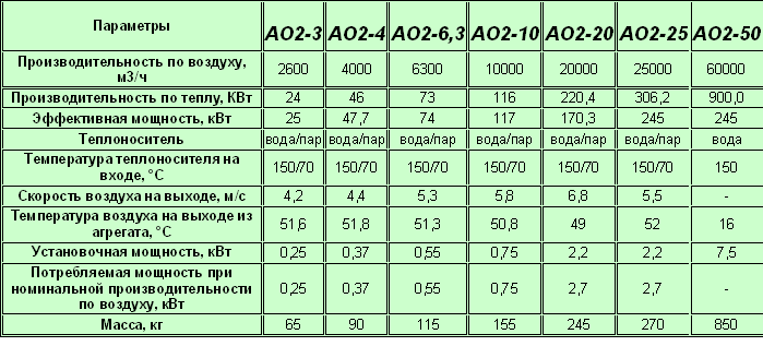 Воздухонагреватели воздушно-отопительные агрегаты АО-2