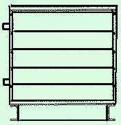 Агрегат состоит из воздухонагревателя (калорифера) (1), осевого вентилятора (2), жалюзи (3) и переходника (4).